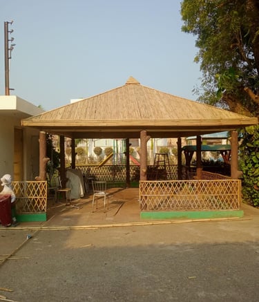 Eco-friendly and stylish bamboo huts for outdoor spaces.