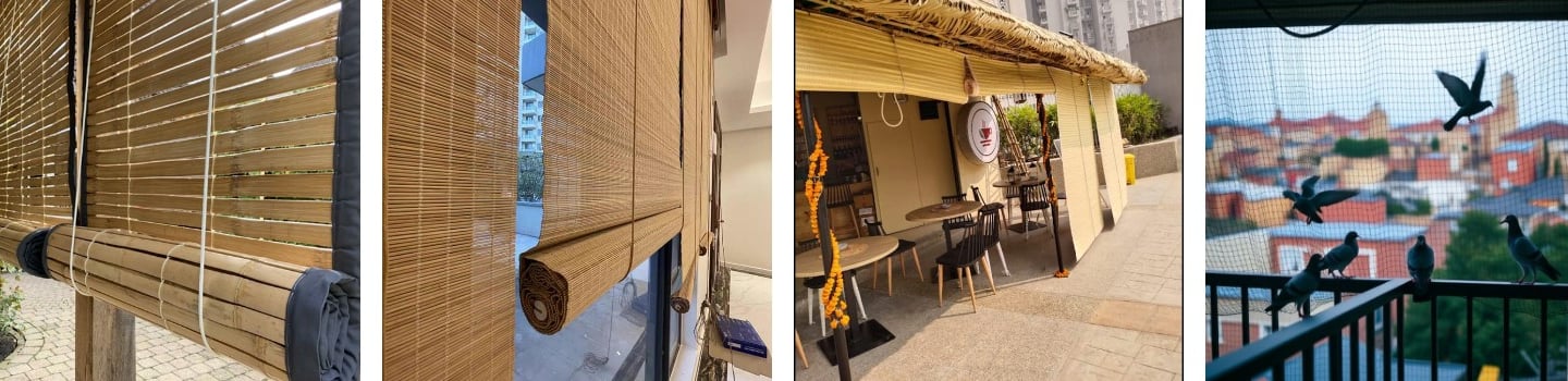 Bamboo is an ideal material for providing shade on a balcony, café, or office, especially in hot weather. Bamboo chicks effectively block sunlight, minimizing direct heat and keeping your space cooler and more comfortable during the summer months. This natural shading not only enhances comfort but also helps protect furniture, plants, and flooring from sun damage and fading. Additionally, bamboo’s breathable nature allows for better air circulation, preventing the space from becoming stuffy—unlike heavier materials.